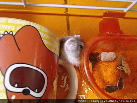 平常最大的興趣是塞在這個夾縫啃咬食盆後方