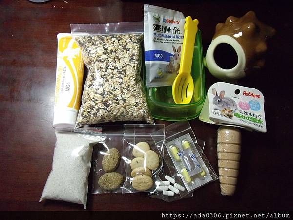 ●嫁妝:倉鼠主食&零食共五小包、塑膠食盆、鼠砂鏟、陶瓷窩。