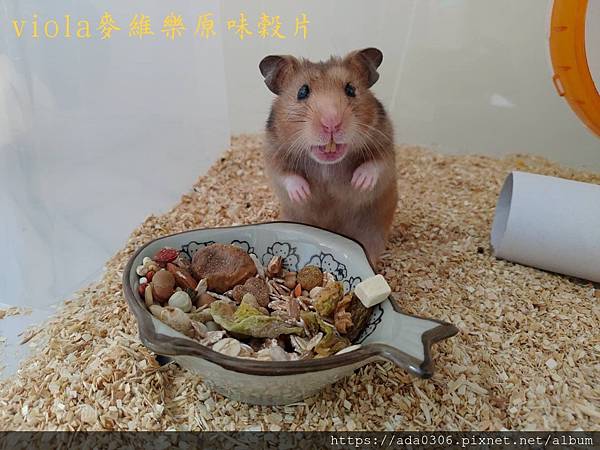viola在台灣有五種口味,其中「原味穀片」是唯一未額外添加糖、鹽、油的,適合寵物鼠吃,而且它的麥片是整顆穀粒直接切片壓製,非即溶麥片,減少加工程序,可以更完整保留穀物的營養。