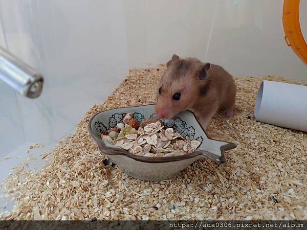 老公公鼠萬能蜂:★★★★★,趁他睡著時拍的,不然真的像蜜蜂一樣整箱子亂飛拍不到,這碗我是用viola原味穀片搭配LOLO營養滿分,故意加多份量,因為LOLO的牧草條他幾乎不吃,都會剩,怕他餓了才給大碗公。亞麻仁籽都在底部,但我覺得吃了有幫助耶,萬能蜂的毛蓬鬆茂密。