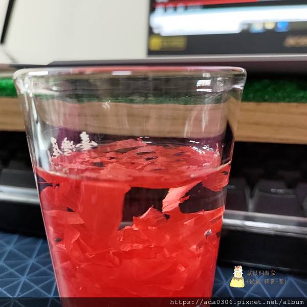 把紙墊材放進清水中,還滿療癒的,這些都是純紙材質,但崩壞版比較薄,很快沉到底部並有飄浮物;年初版單片較厚,匯聚在一起不沉沒。兩種都不會脫色。