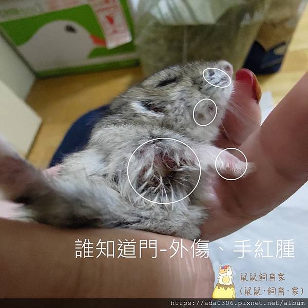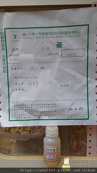 (5).看診後診斷結果︰「救命釣竿」糞便較油,主食中附的水果乾和堅果暫時不要給、傷口在滲血要密集觀察;「誰知道門」雖然有大大小小傷口,但已都在癒合,可等待復原。