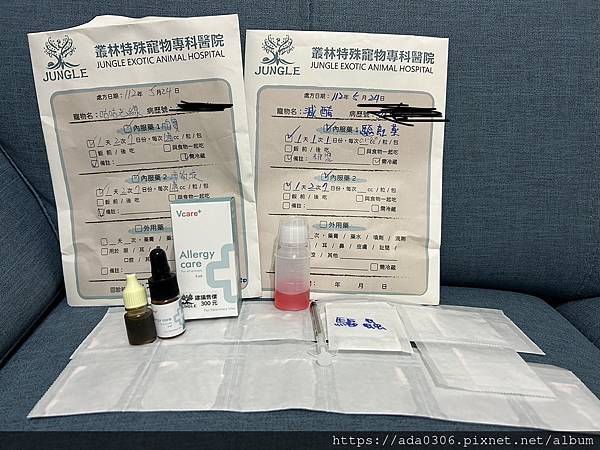 咕咕光線的糞便鏡檢被醫師說很棒唷,也沒有脂肪小滴,食物都有好好的消化,真是太好了~只是咕咕光線的手臂根部還是有些紅,所以沛敏液要繼續吃。