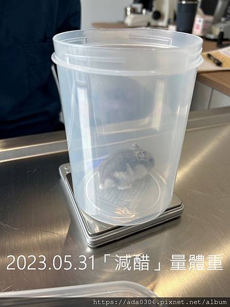 ◆就診流程:測量體重(新增了一個筒狀盒子,把倉鼠放進去量)、糞便檢查。