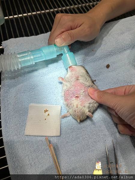上圖是氣體麻醉管已移開,鼠寶還在睡覺(睜著眼睛睡覺XDDD)