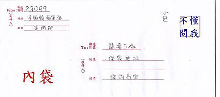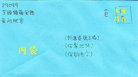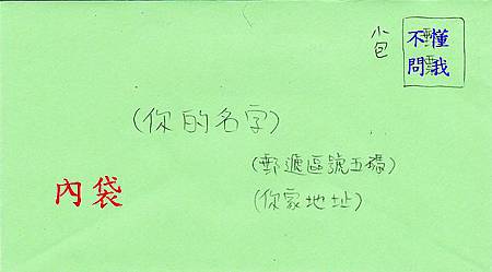 tips:會把兩個信封標示為內外袋,是因為真的有人兩個裝錯,結果信封又寄回自己家,白花郵資很可惜。