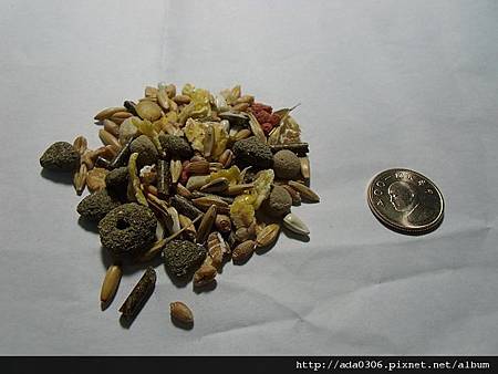 ●成份:綜合穀物、白瓜子、葵瓜子、小麥、燕麥、花生、胡羅蔔片、豌豆片、苜蓿草、維生素與礦物質。